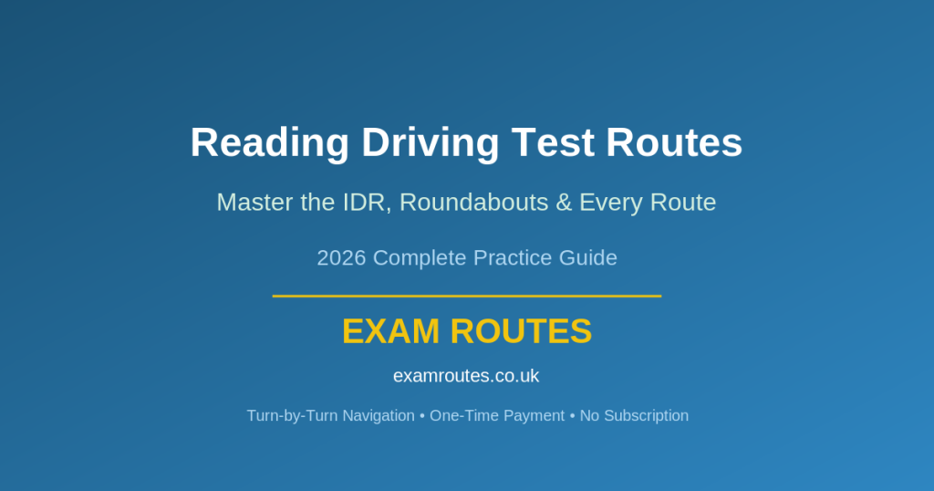 If you’re booked at Reading or thinking about it, this guide breaks down every route, road, and challenge you need to master before test day. We’ve mapped them all inside the Exam Routes app — one-time payment, no subscription — so you can practise with turn-by-turn voice navigation on your phone.