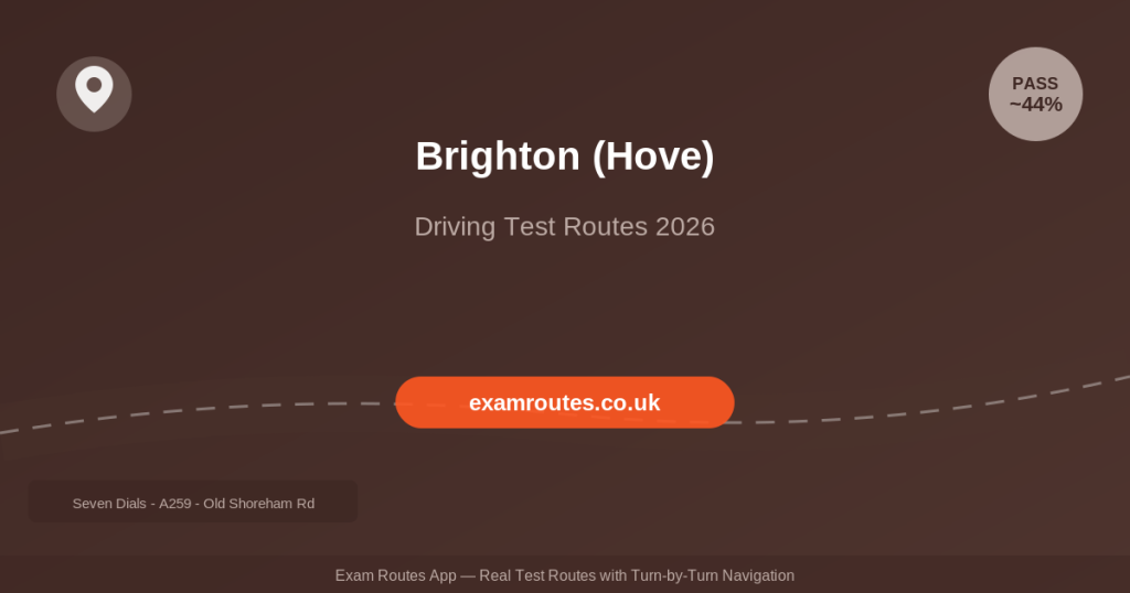 Master the Seven Dials roundabout from every approach — practise it until you could navigate it with your eyes closed. Learn the bus lane rules for the seafront roads. Practise lane discipline on Old Shoreham Road and the A27 slip roads. Get used to navigating narrow residential streets with parked cars on both sides. Pay attention to the frequent speed limit changes — Brighton has many 20 mph zones that are easy to miss. On test day, stay calm in heavy traffic and remember that the examiner expects you to drive safely, not quickly. The Exam Routes app lets you practise the exact routes beforehand, which is invaluable for building confidence at this centre.