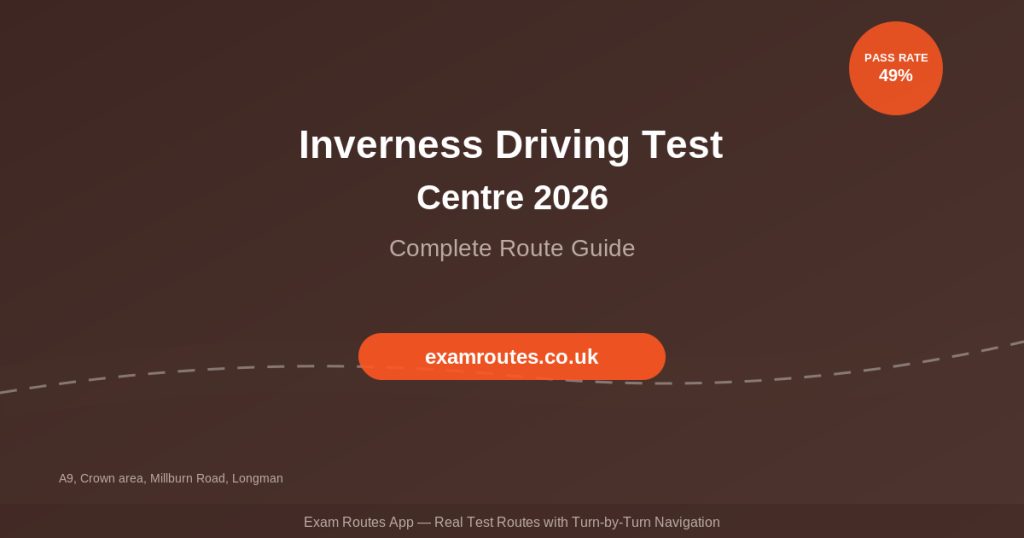 Inverness Driving Test Centre has a pass rate of approximately 49%, close to the UK national average. The Highland road network presents genuine variety — from rural-adjacent A-roads to busy urban junctions — and learners who have practised specifically on local roads tend to perform significantly better than those relying only on general driving experience.