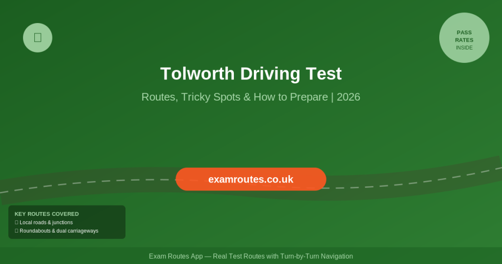 The Exam Routes App provides mapped driving test routes with turn-by-turn navigation for test centres across the UK, including Tolworth. Whether you want to follow the routes as a passenger to build familiarity, or use them during actual practise sessions, the app gives you access to the same route knowledge that experienced local instructors use.
