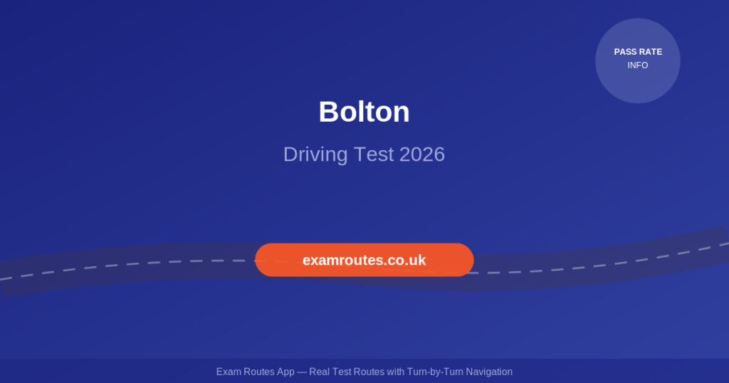 Bolton Driving Test Centre serves learners across this Greater Manchester town and the surrounding areas of Farnworth, Horwich, Westhoughton, and Leigh. Routes here reflect the character of Bolton’s road network — a mixture of busy town centre roads, outer ring routes, and access to the motorway network. This complete 2026 guide gives you everything you need to tackle the Bolton test with confidence.