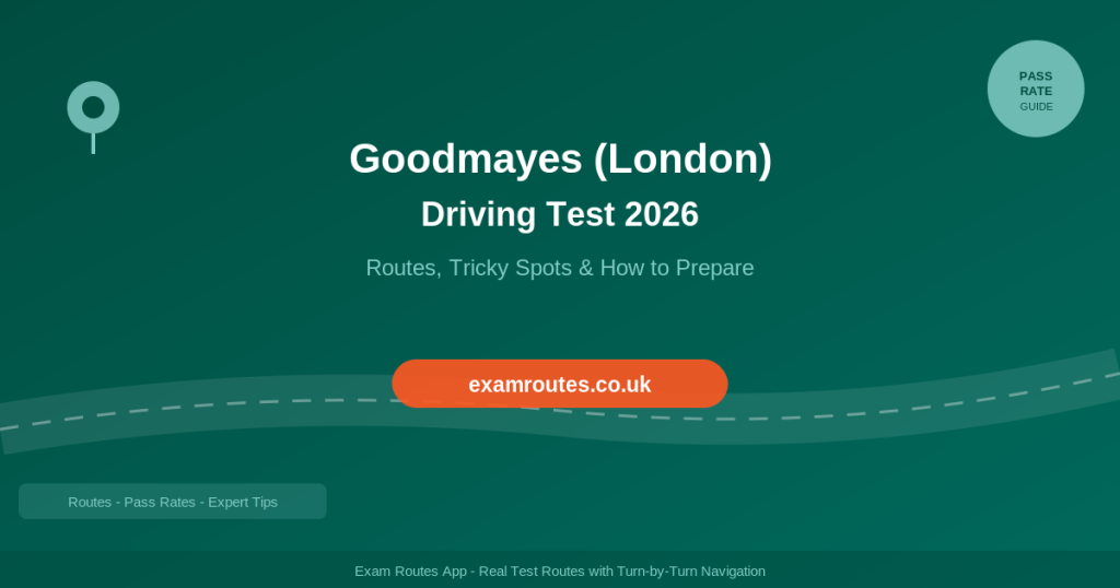 Download the Exam Routes App for real Goodmayes routes with navigation, and ensure your lessons cover the A12, Ilford one-way system, and East London residential driving.