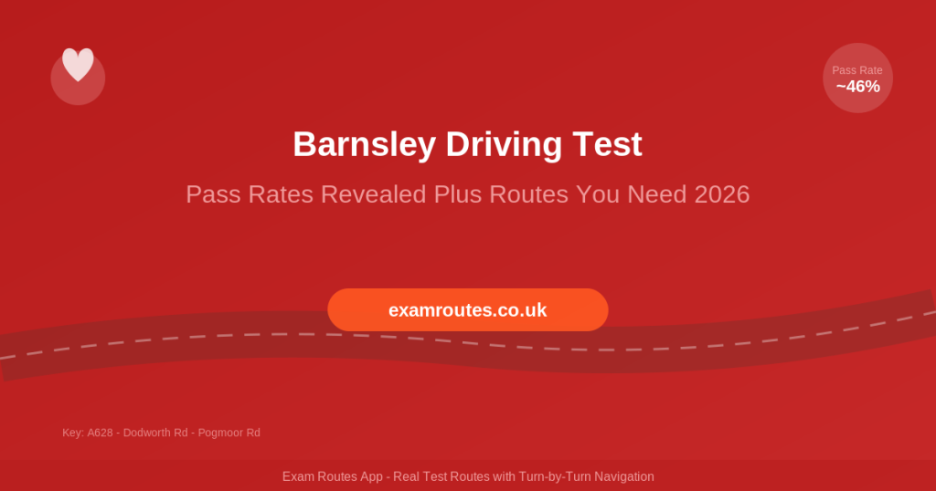 Barnsley has a pass rate of approximately 45-47%, close to the national average. The mix of town and semi-rural roads means you need to be confident in different driving environments to succeed.