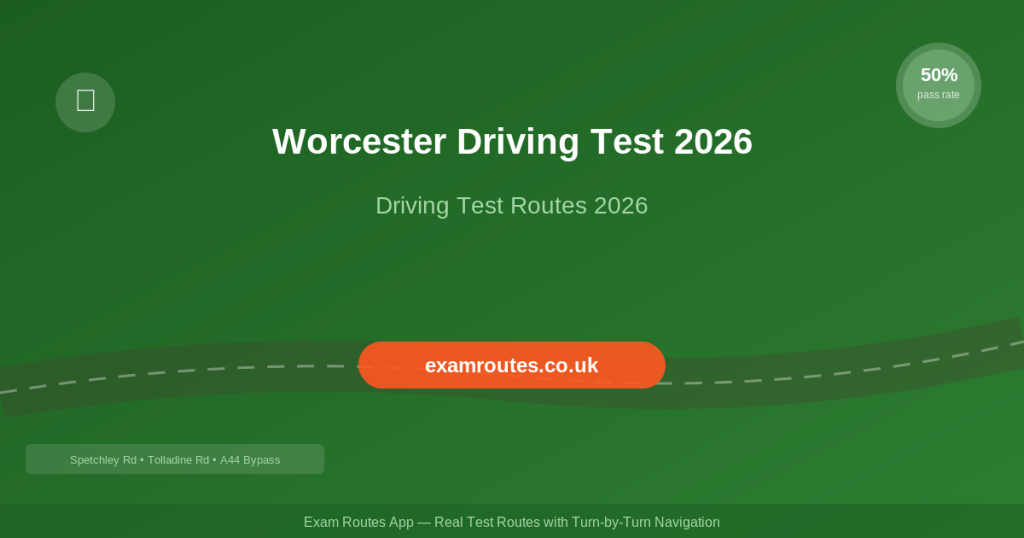 Worcester Driving Test Centre on Spetchley Road is one of the busier centres in the West Midlands, and with a pass rate of around 50% it sits right on the national average. The routes cover a wide mix of urban streets, suburban estates and sections of the A44 bypass, making it a well-rounded test that examines every core driving skill. This guide breaks down the routes, tricky spots and practical tips you need to pass at Worcester in 2026.