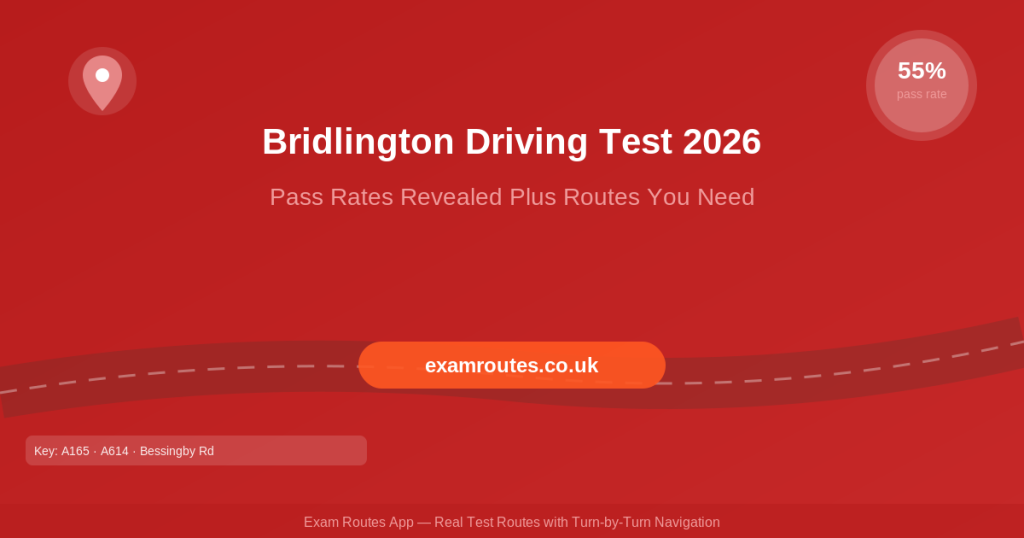 Bridlington is a coastal driving test centre in East Yorkshire, located within the Bessingby Industrial Estate. It serves learners from Driffield, Filey, Flamborough and the surrounding East Riding area. With a pass rate of around 55%, Bridlington is one of the more favourable centres in Yorkshire, but the mix of seaside town traffic, rural roads and coastal stretches means you still need solid preparation.