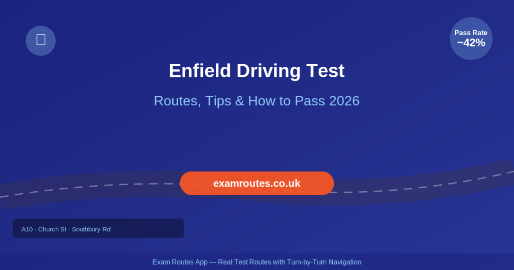 Enfield Driving Test Centre has a pass rate of approximately 42%, which is below the national average of around 47%. This reflects the challenging mix of urban roads, dual carriageways and heavy traffic that learners face here. Thorough preparation on the actual test routes can significantly improve your chances.