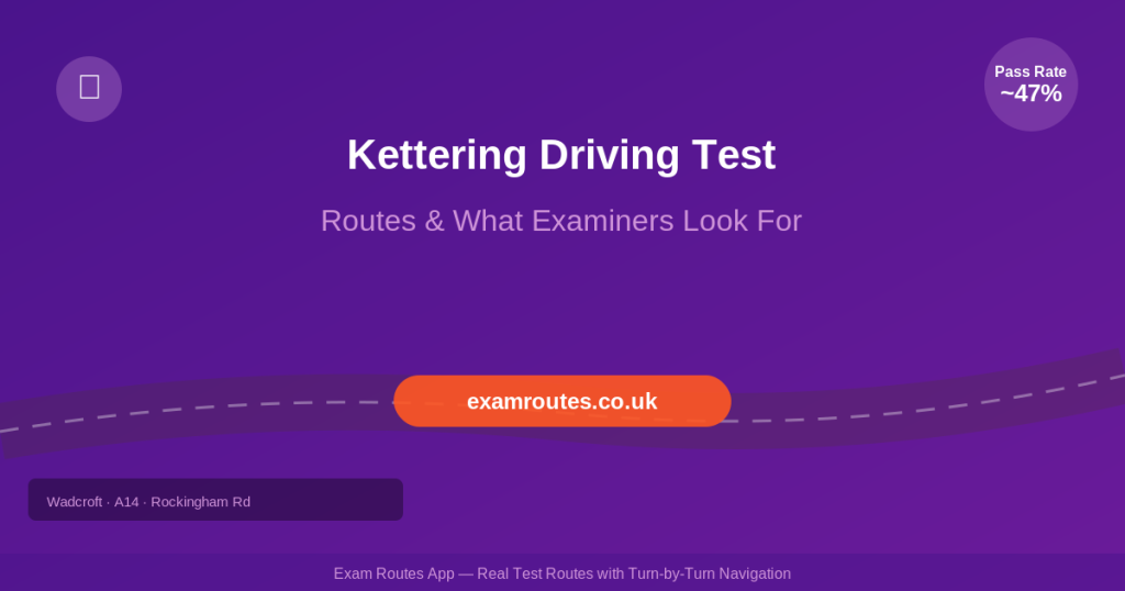 The Exam Routes App includes real driving test routes from Kettering Test Centre. Practise every roundabout, junction and road with turn-by-turn navigation on your phone.