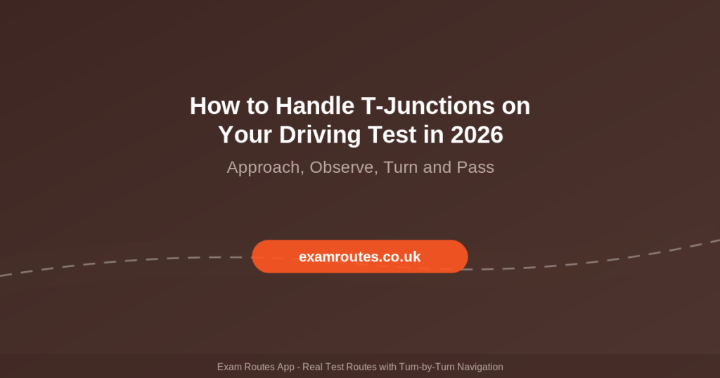 T-junctions are one of the most common road features you will encounter on your driving test. A typical test includes several T-junction turns, both emerging from a minor road and turning off a major road. Examiners use T-junctions to assess your observation skills, your ability to judge the speed and distance of oncoming traffic, and your overall road positioning. Getting T-junctions right is essential for passing.